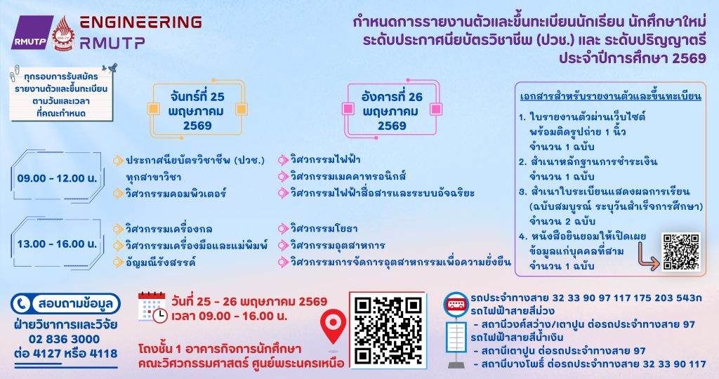 คณะวิศวกรรมศาสต์ มหาวิทยาลัยเทคโนโลยีราชมงคลพระนคร ขอแสดงความยินดีกับ ดร.ณัฐวรพล รัชสิริวัชรบุล […]