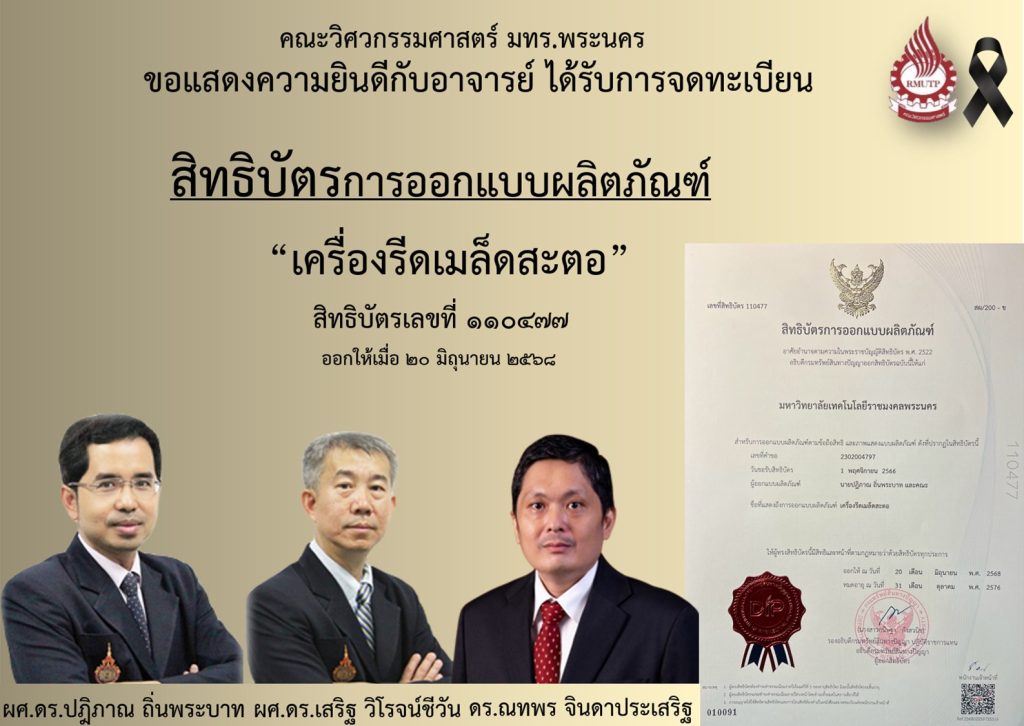 วิศวฯ ขอแสดงความยินดี ผศ.ดร.ปฎิภาณ ถิ่นพระบาท ผศ.ดร.ประเสริฐ วิโรจน์ชีวัน และ อาจารย์ ดร.ณทพร จินดาประเสริฐ