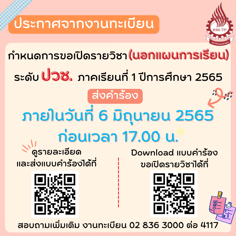 – Download แบบคำร้องขอเปิดรายวิชา >> https://bit.ly/3wCInge