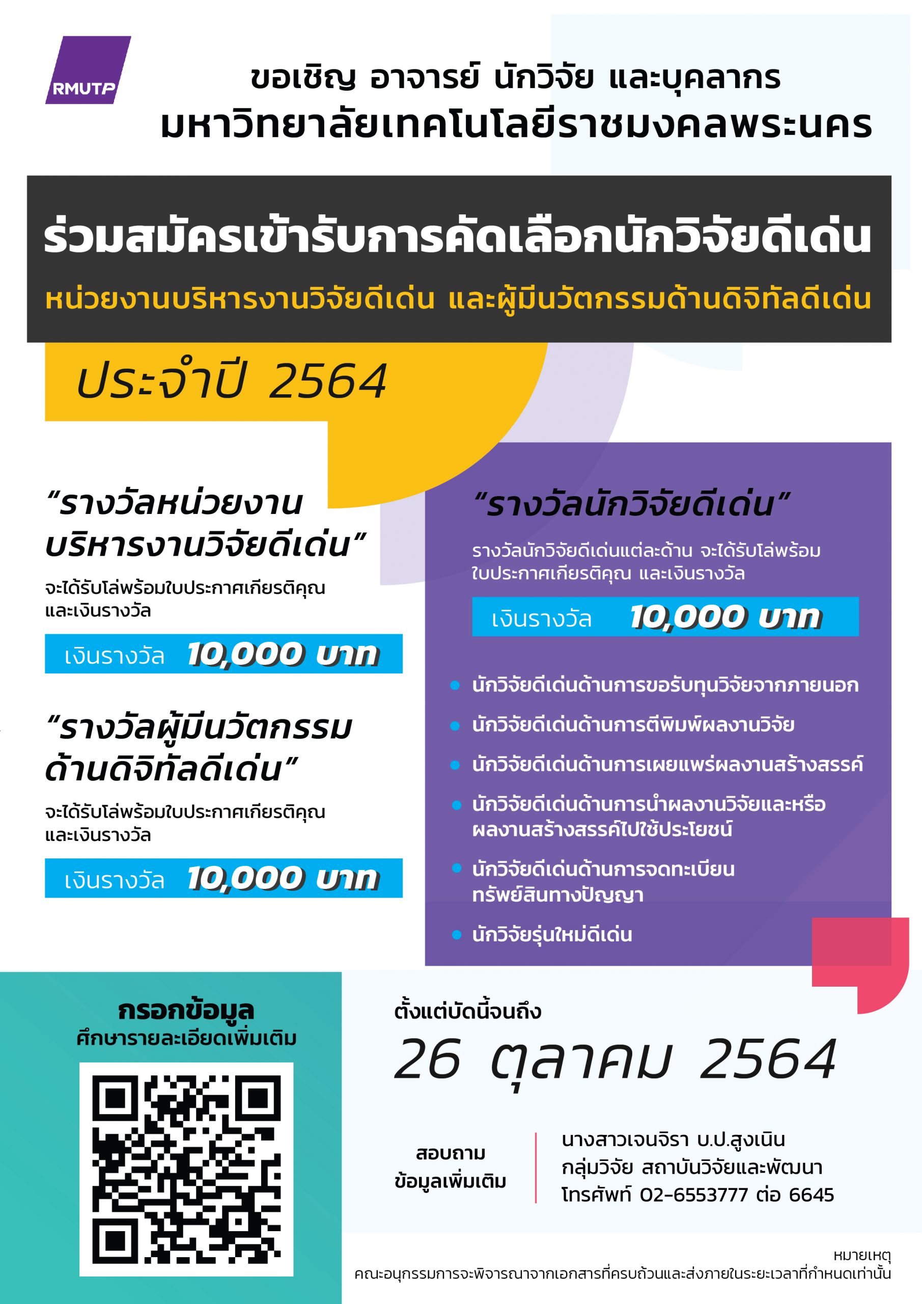หรือศึกษารายละเอียดเพิ่มเติมได้ที่ เว็บไซต์สถาบันวิจัยและพัฒนา