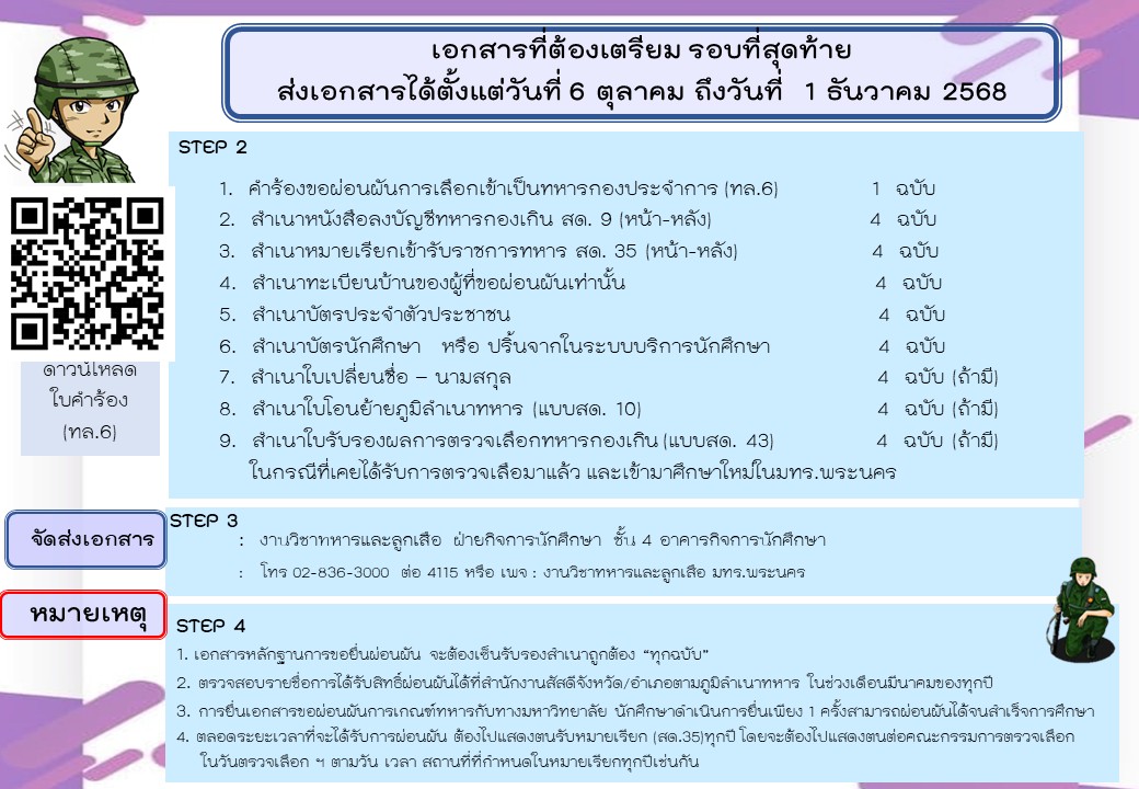 แจ้งเรื่องการขอผ่อนผันทหาร ปีการศึกษา 2568 (รอบสุดท้าย)