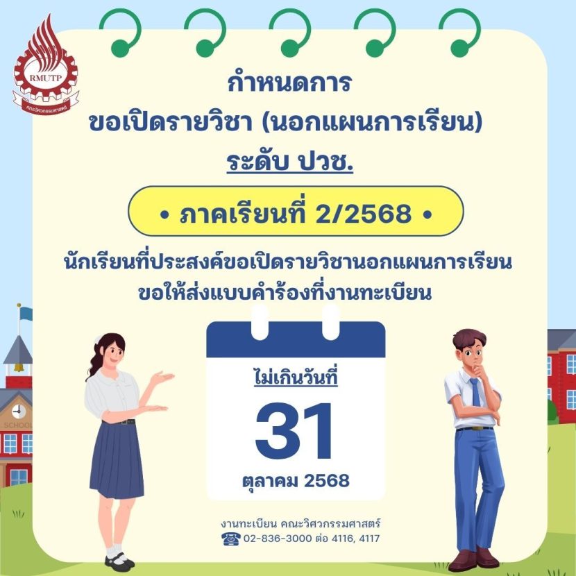 📣📣ประกาศจากคณะวิศวกรรมศาสตร์ มทร.พระนคร📣📣 กำหนดการขอเปิดรายวิชานอกแผนการเรียน ระดับ ปวช. […]