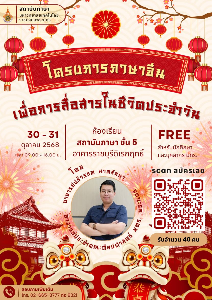 โครงการภาษาจีนเพื่อการสื่อสารในชีวิตประจำวัน ฟรี! วันที่ 30–31 ตุลาคม […]