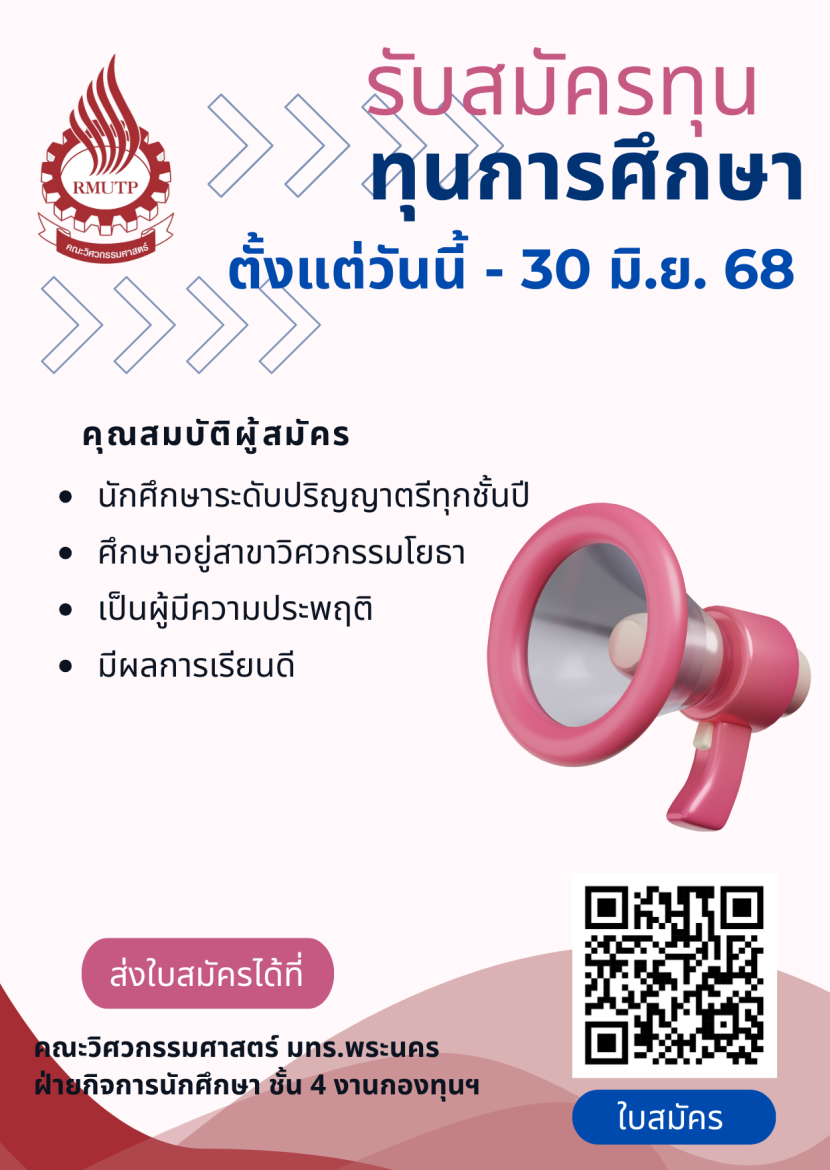 คณะวิศวกรรมศาสตร์ #ราชมงคลพระนคร ขอแสดงความยินดีกับนักศึกษาสาขาวิชาวิศวกรรมเมคคาทรอนิกส์ นายวีระชัย ไทรชมพู […]