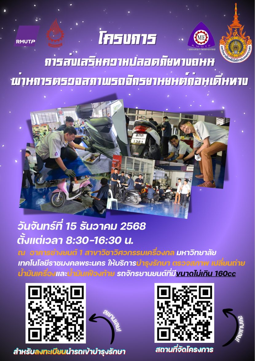 สาขาช่างยนต์ คณะวิศวกรรมศาสตร์ มหาวิทยาลัยเทคโนโลยีราชมงคลพระนคร ให้บริการตรวจสภาพ บำรุงรักษา […]