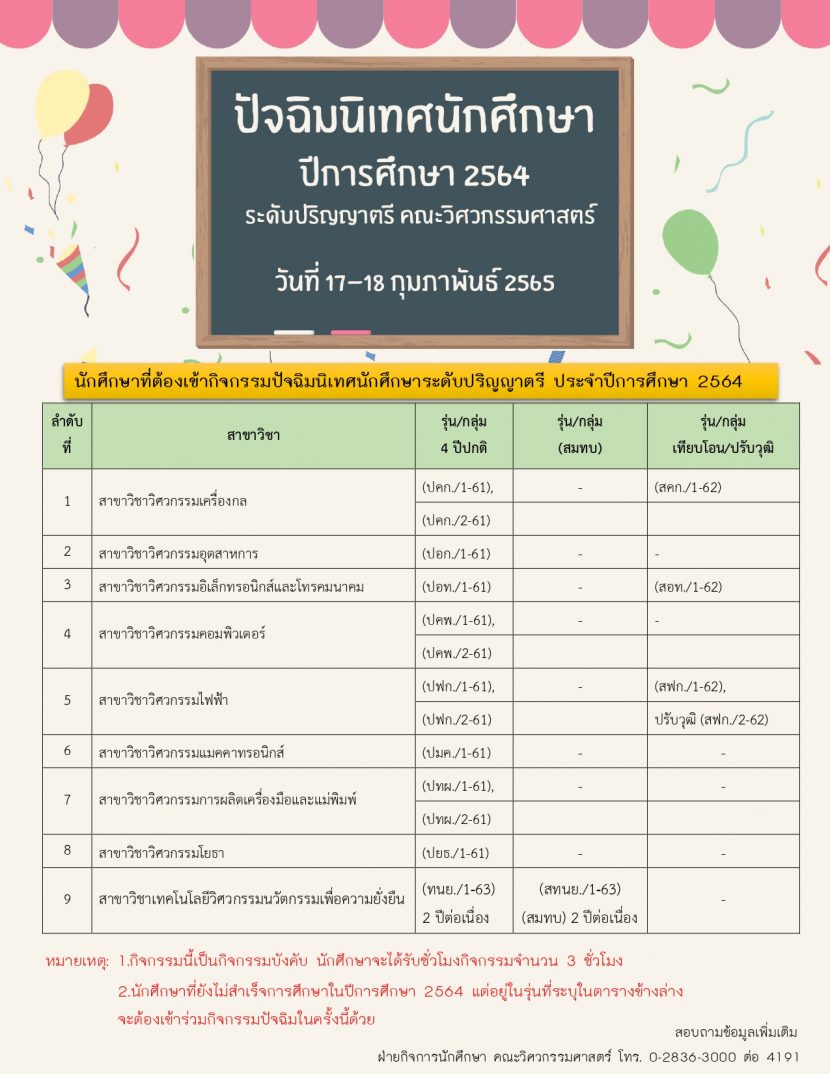 ขอเชิญนักศึกษา #ระดับปริญญาตรี เข้าร่วม “โครงการปัจฉิมนิเทศนักศึกษา” ประจำปีการศึกษา […]